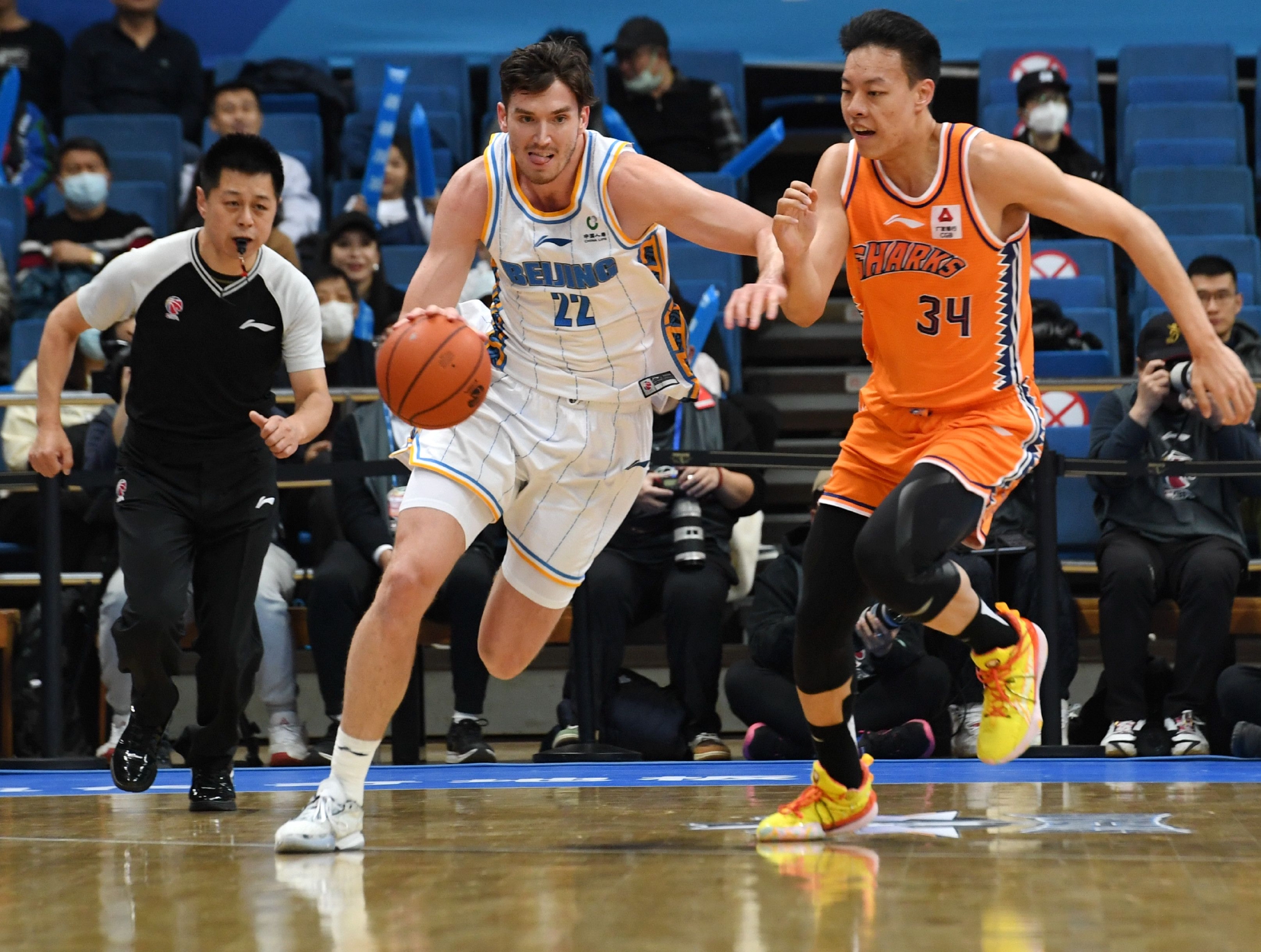 3月5日,北京首钢队队员曾凡博(中)在比赛中突破。新华社记者 张晨霖 摄