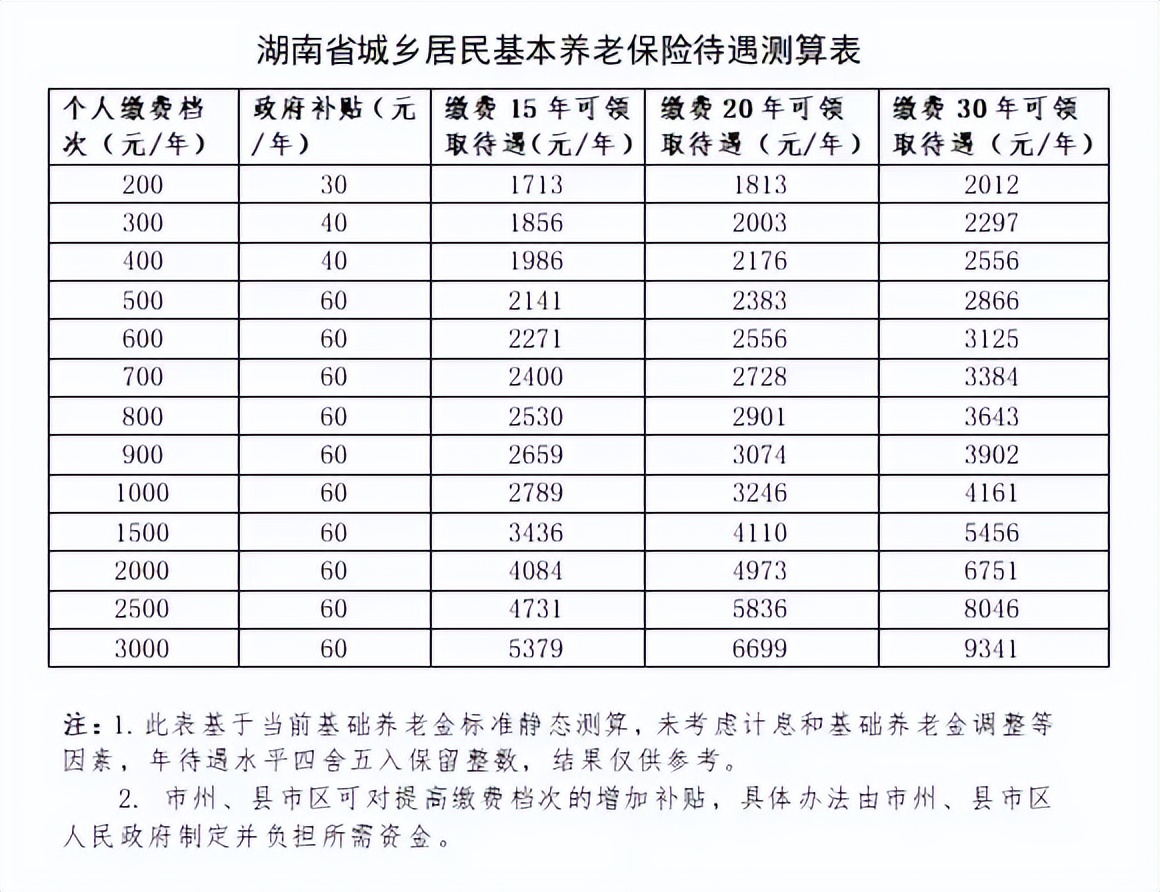 我们以湖南省的城乡居民养老保险就每年交的钱的档次跟每年可领的钱的多少来说一下,可能别的地方有所区别。以你们当地公布的数据为准,这里仅供参考。